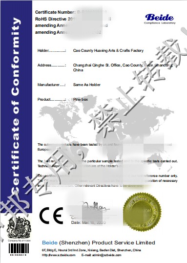 恭贺曹县XX工艺品厂2020年4月顺利通过ROHS认证!