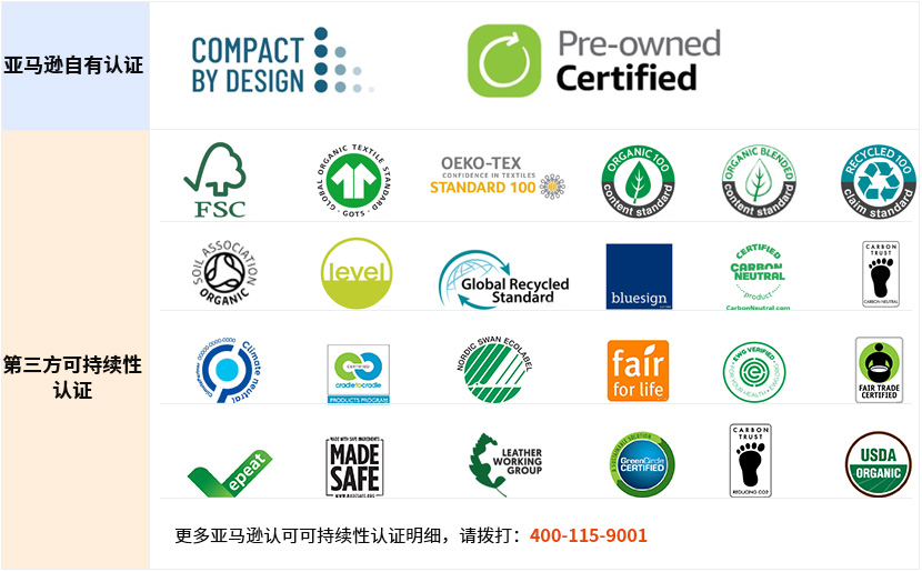 方案1:需要通过亚马逊认可的45种可持续性认证中的至少1种。
